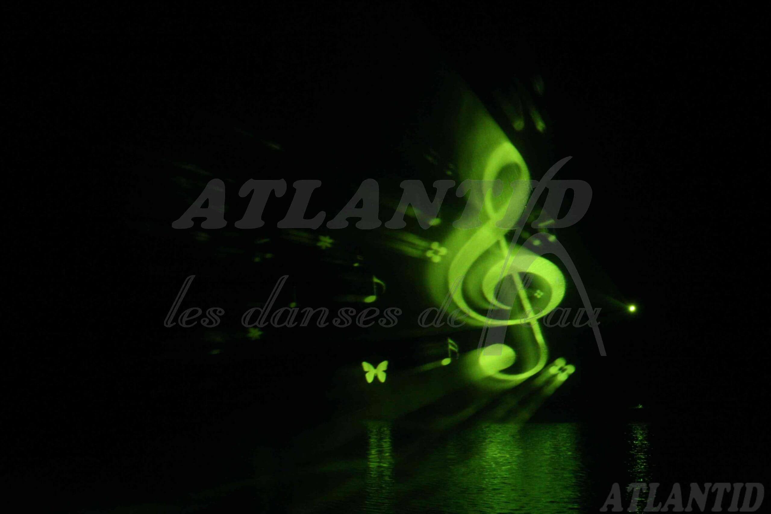 Atlantid - Projection d'une note de musique verte sur de l'eau