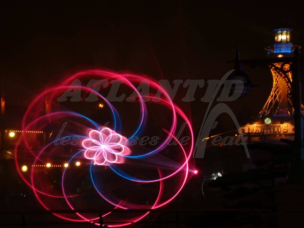 Atlantid - Projection d'effets fleuris en rouge et bleu sur de l'eau