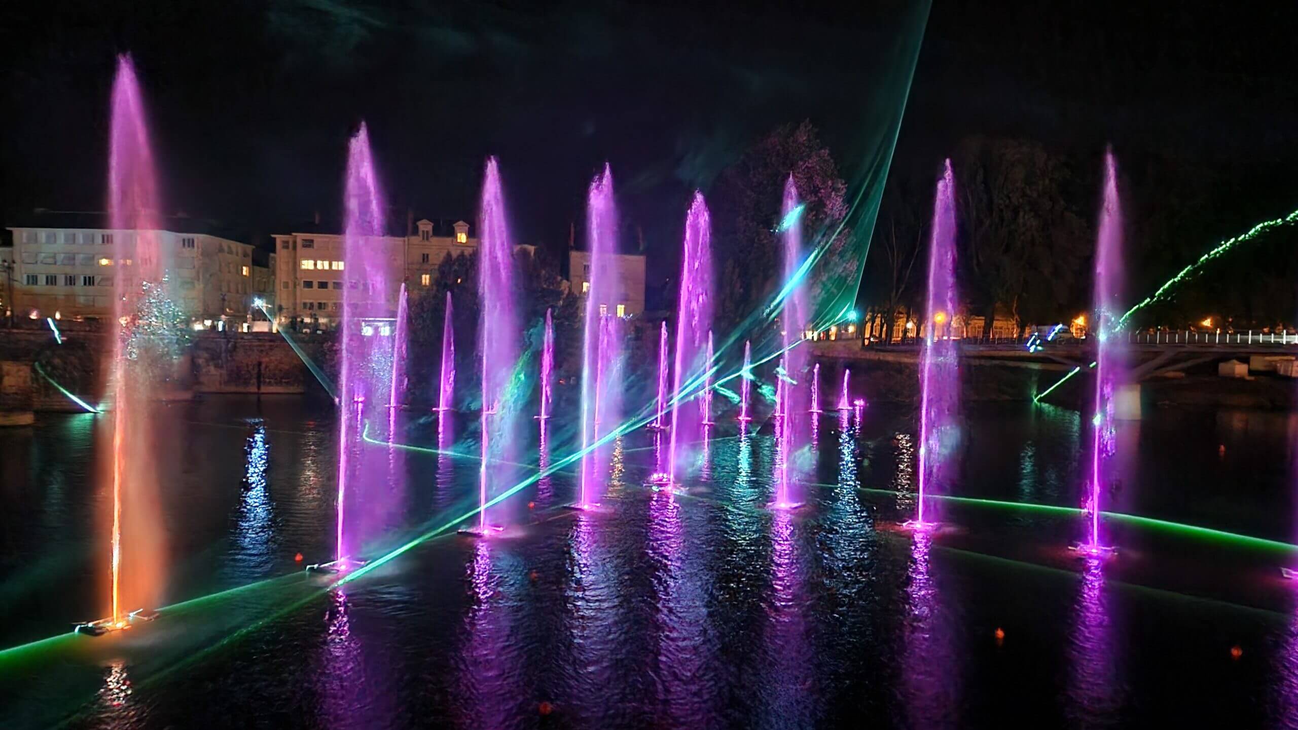Estos espectáculos son totalmente personalizables para adaptarse a su identidad gráfica o al tema de su evento. Los láseres son ecológicos debido a su bajo consumo de energía. Ofrecen la representación más impresionante por la noche y una precisión notable. Luego, asociado a las fuentes instaladas y montadas por Atlantid, ofrecerás un momento memorable a tus espectadores.